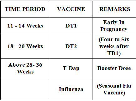 Below vaccines are recommended during pregnancy to protect the health of the mother and the expected baby.